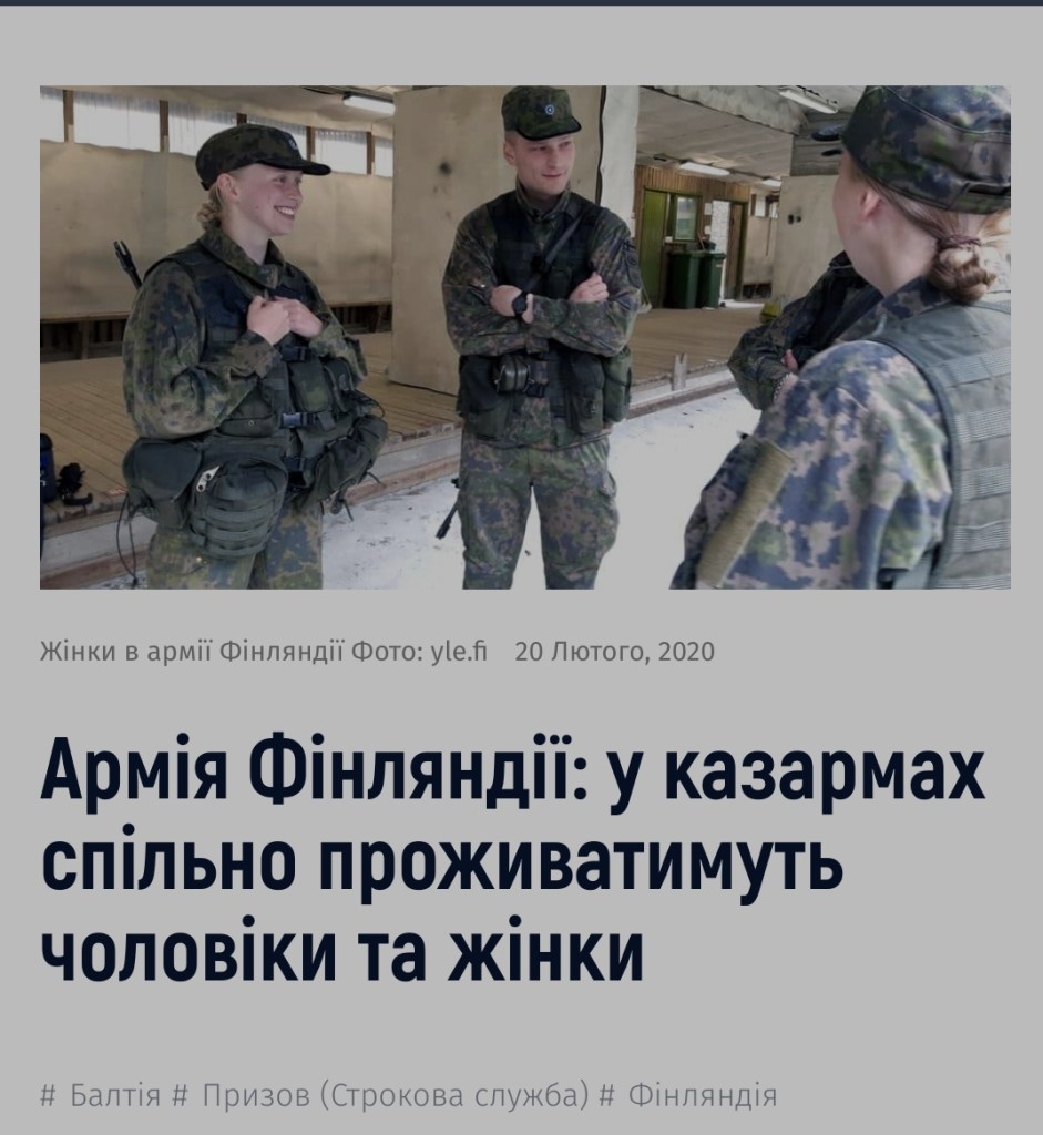 Однак у цивілізованих країнах жінки є громадянками своєї країни, патріотами. Але в Україні серед жінок немає патріотів! Уявіть собі, з 1 мільйона військовослужбовців в Україні лише 5 000 жінок на посадах, далеких від бойових, серед яких
