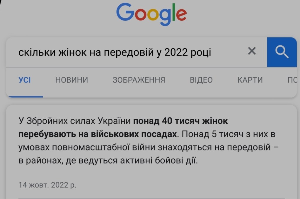 * Що таке Я зачепив чиюсь хвору феміністичну свідомість? Кінець 2022 року, що це таке з 1 мільйона солдат, лише 995 тисяч чоловік та АЖ 5 тисяч жінок; якась не справедливість права жінок затискають ся» ану кричіть!!!