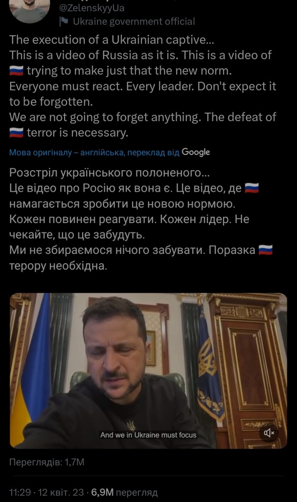 Подивіться це відео, якщо Вам більше 21 року, дивіться без звуку, щоб акцентувати свій погляд на тому, що окупанти перевірили його документи, розброїли його, потім почали жахливе вбивство. Тобто, вони впевнились, що він загрози не несе та почали його вбивати. Вони куколди, руські нацистські куколди.